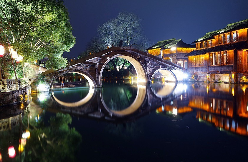 청대의 건물이 남아있으며 아치형 다리가 많음, 배 30분에 10-50원 ) 에