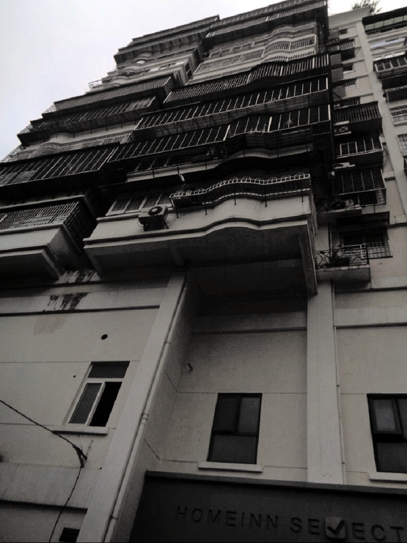 입구가 경사진 언덕에 호텔로 들어가면서 보니 건물 외부에 영어 이름이 적혀있는데 Homeinn Selected