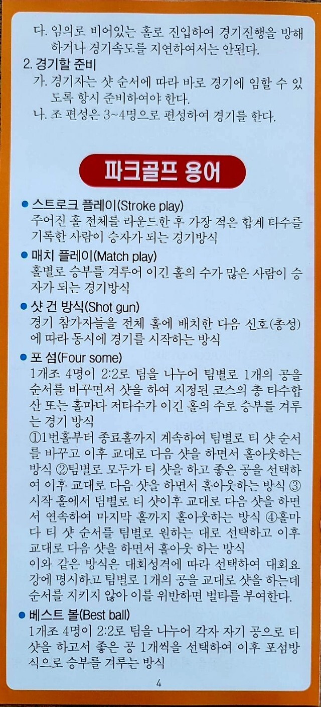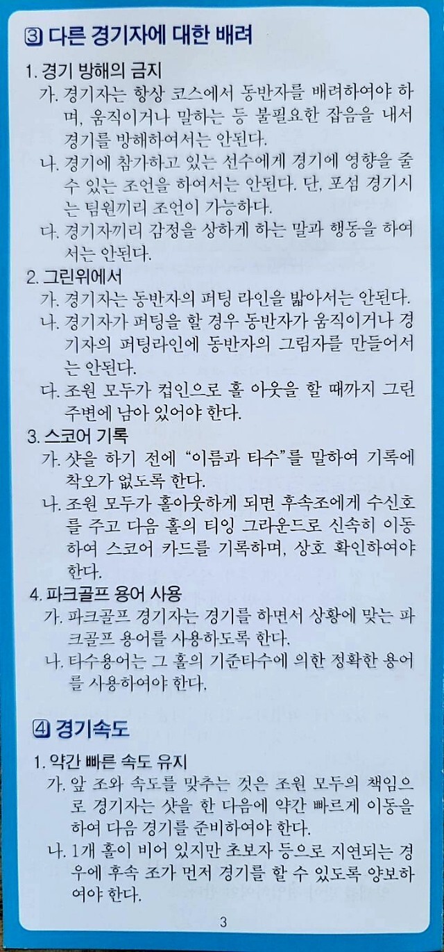 에티켓및경기규칙정리 작성자최준배파크골프발전연구소|작성시간21.12.15|조회수50 목록 댓글 0 글자크기 작게가 글자크기 크게가 ⛳⛳ 간편한 파크골프 에티켓및경기규칙 ⛳⛳정리및편집"밴드"최준배파크골프발전연구소올바른 파크골프 문화정착을 기대합니다. 다음검색 현재 게시글 추가 기능 열기 북마크 공유하기 신고 센터로 신고 댓글 댓글 0 댓글쓰기 답글쓰기 댓글 리스트