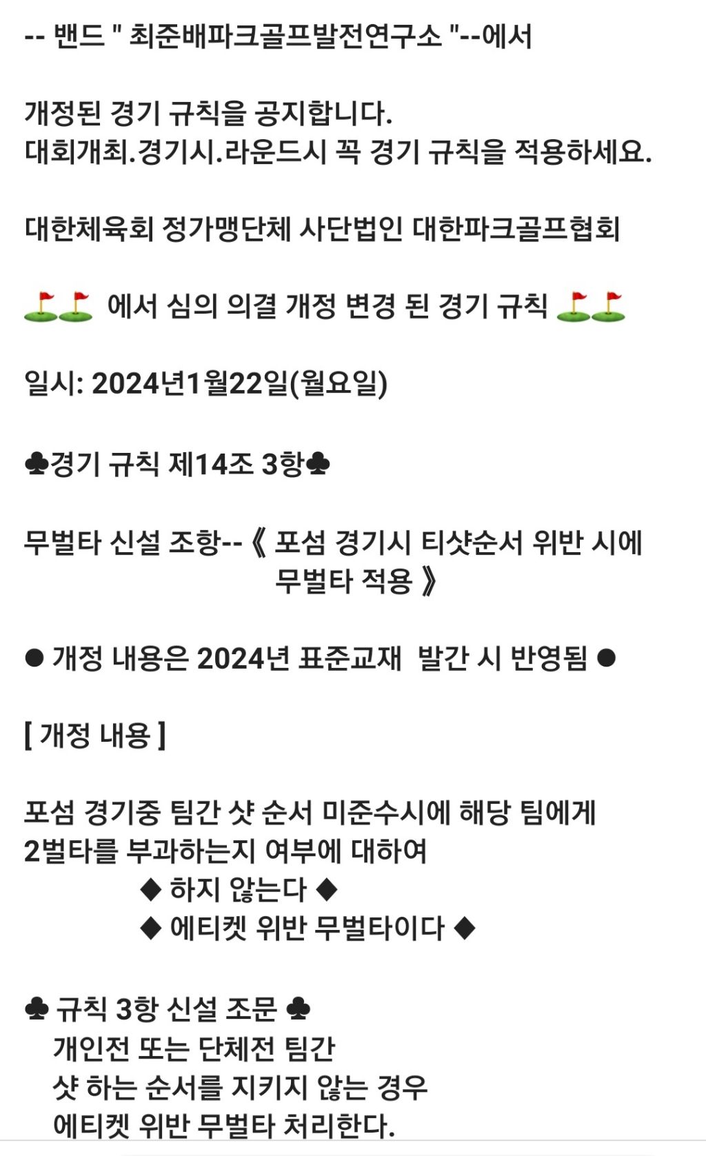 대회개최.경기시.라운드시 꼭 경기 규칙을 적용해주세요.