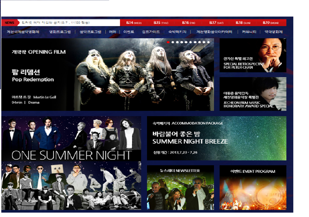 제9회 제천 국제음악영화제( 2013년 8월 14~19일)와 같이 추억 만들기 기회를 놓치지 마세요. 이벤트는홈페이지 참조