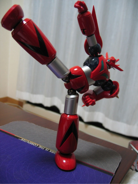 초혼 진마징가와 같이 높은 합금률과 폭넓은 가동이 가능합니다. 고관절과 발목을 뽑아서 늘리는 기믹도 초혼 진마징가와 똑같습니다.