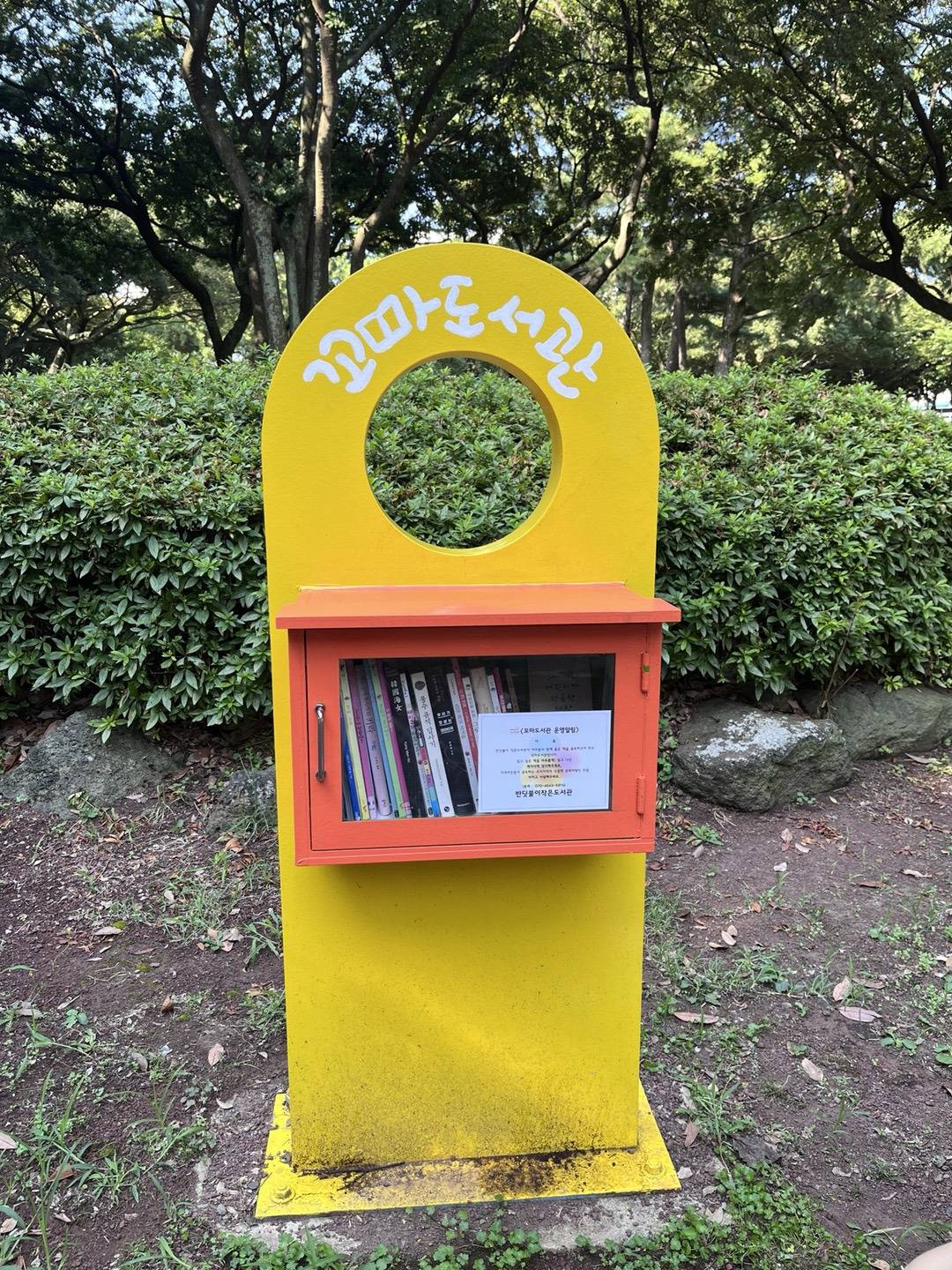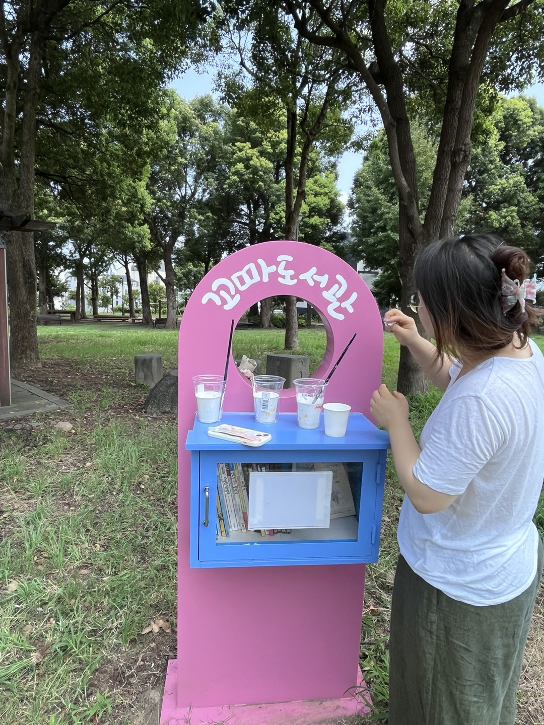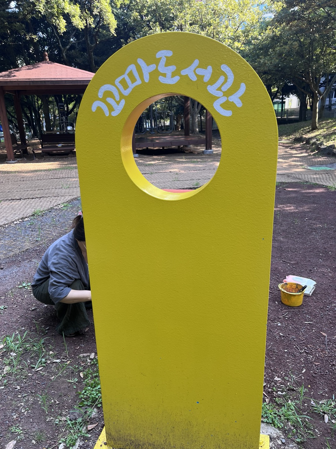 오전부터 현민정선생님이랑 꼬마도서관에 글자 쓰고 왔습니다.