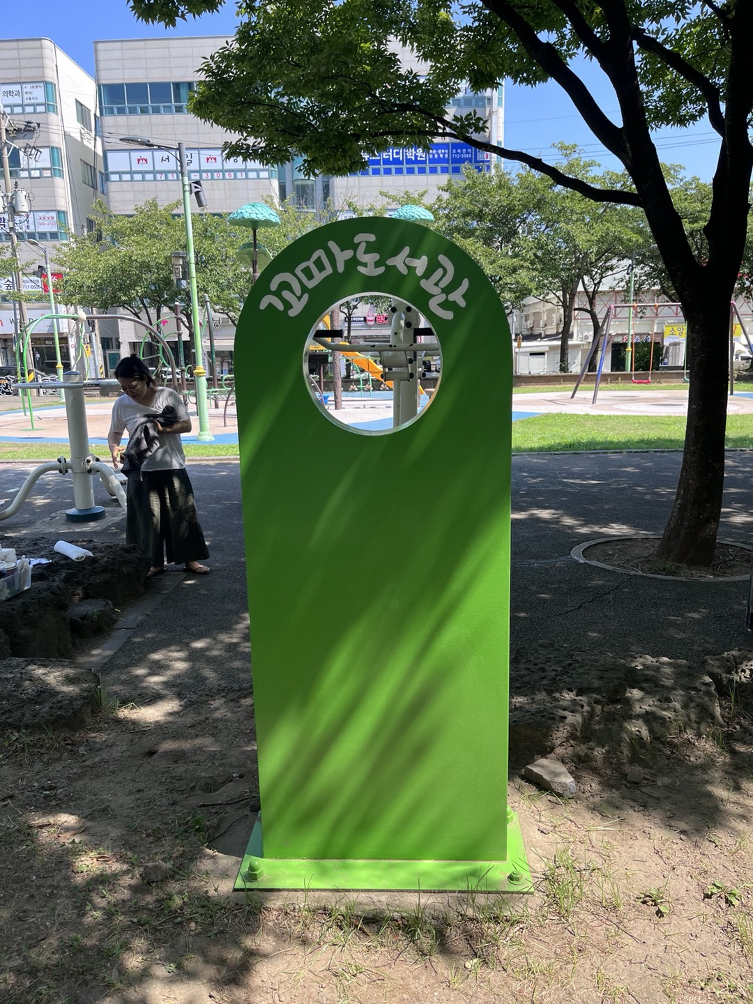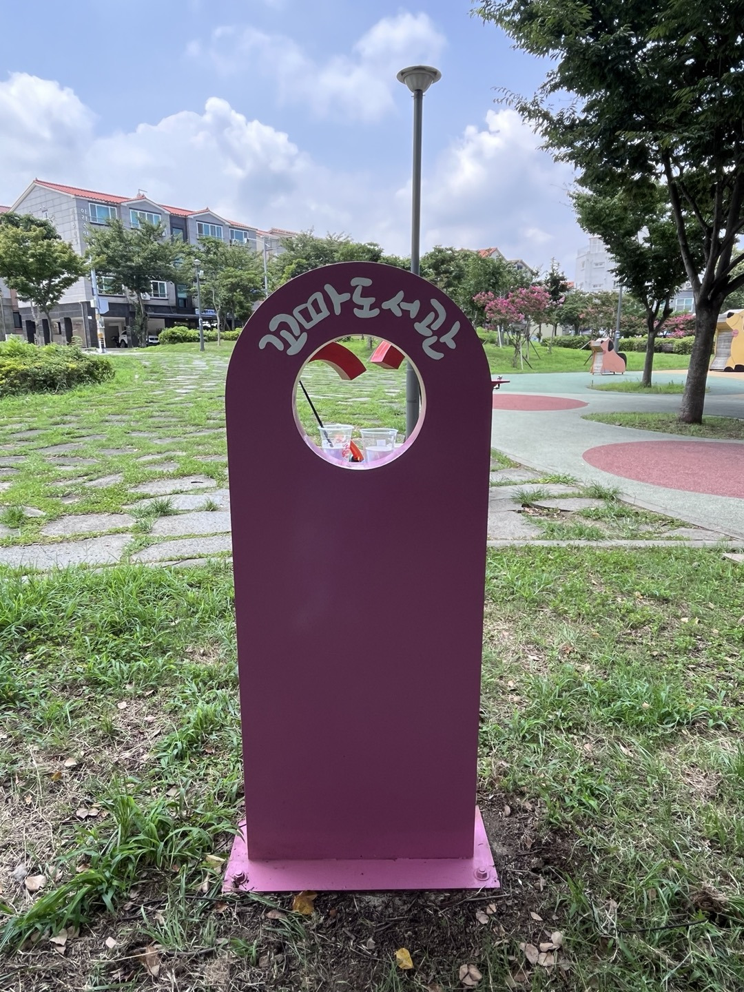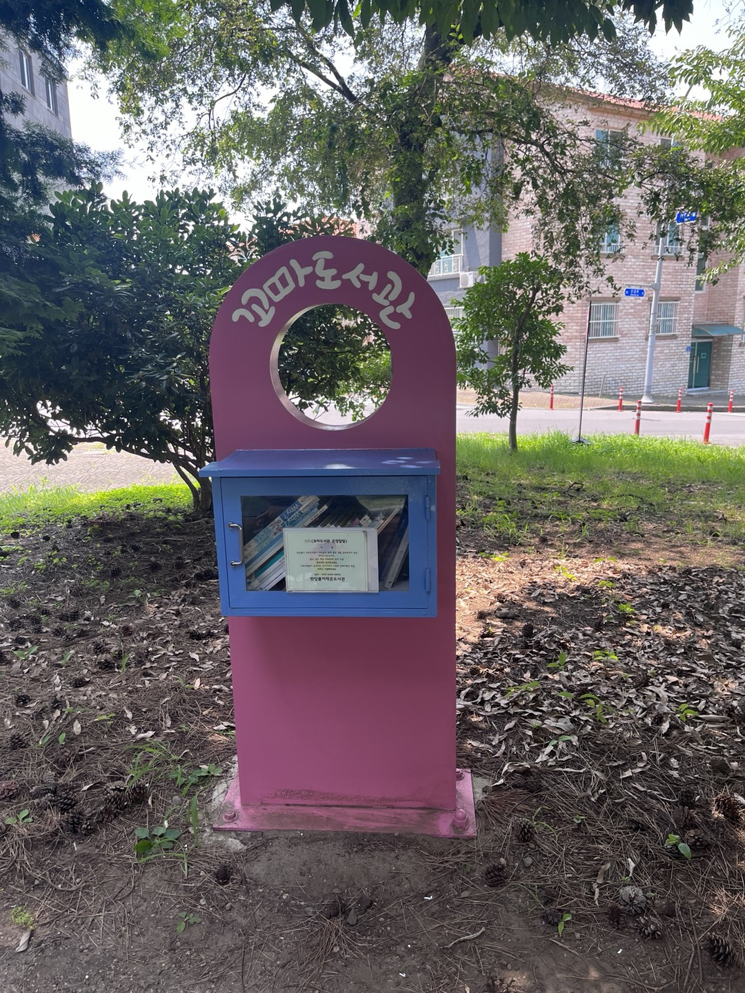 오전부터 현민정선생님이랑 꼬마도서관에 글자 쓰고 왔습니다.