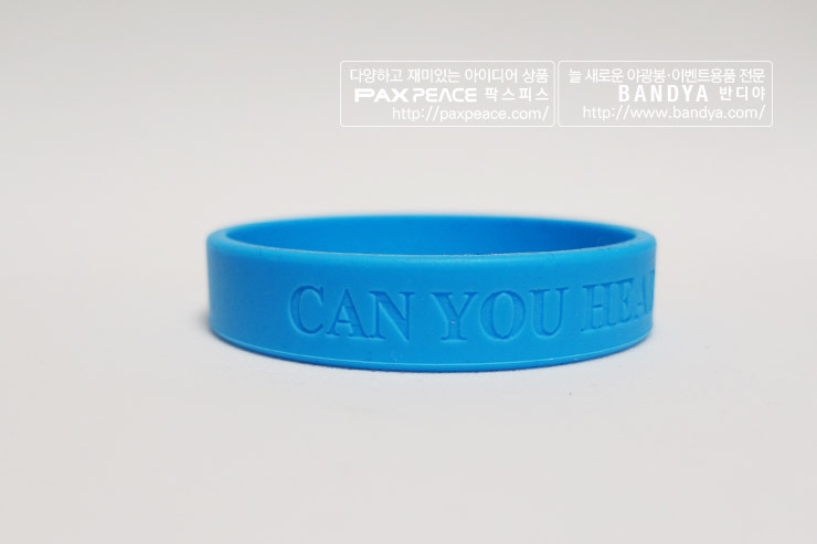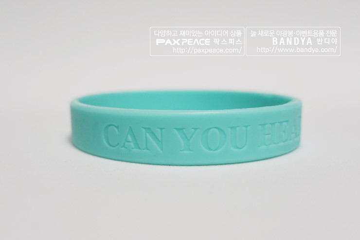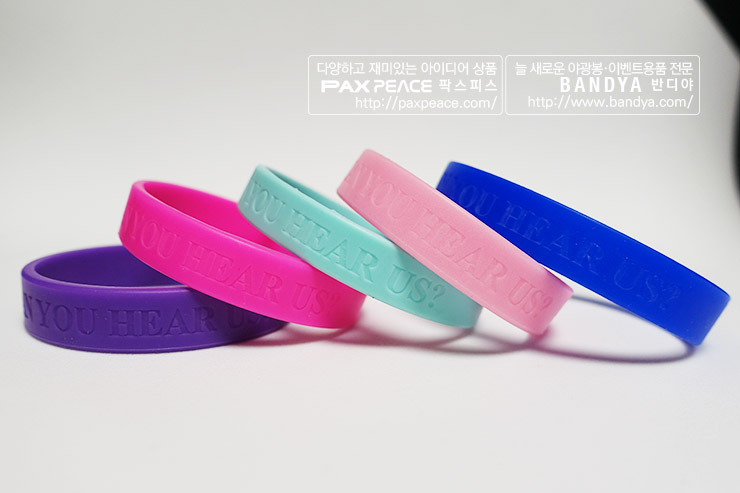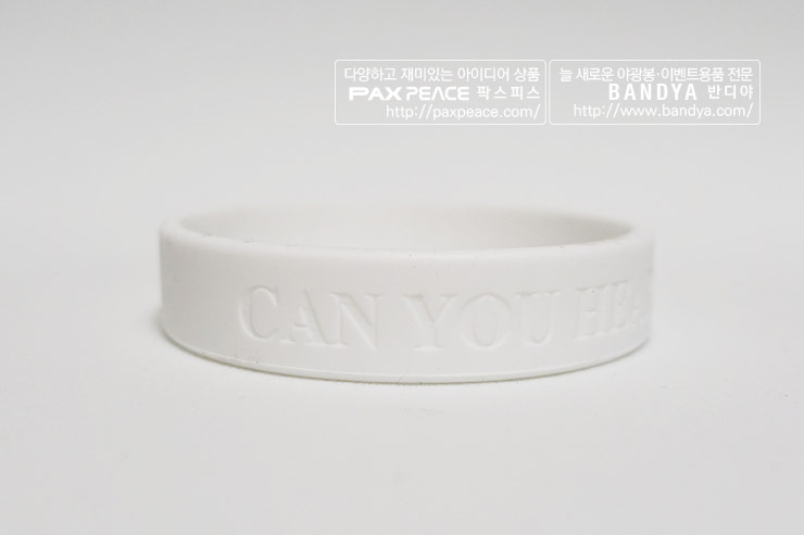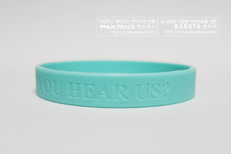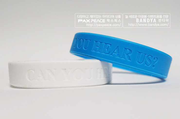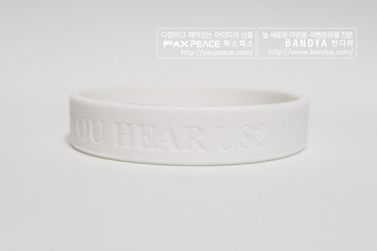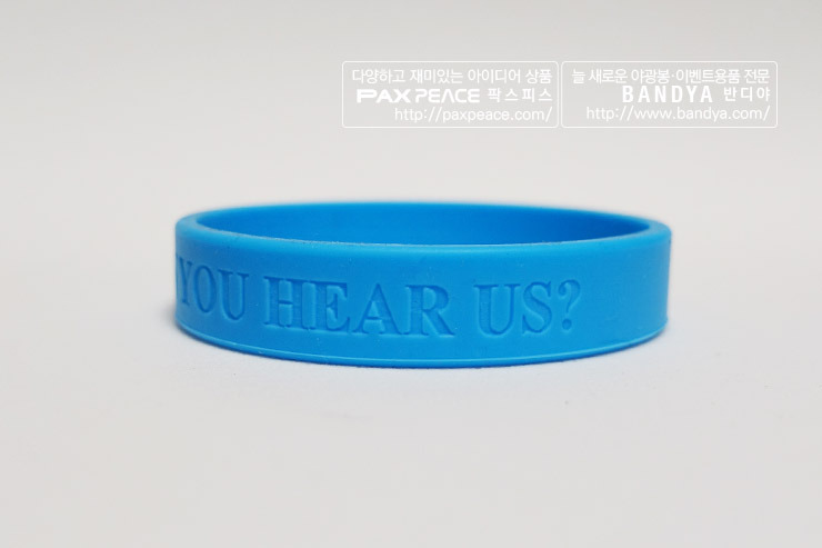 "CAN YOU HEAR US?" 영어 문구를 각인한 실리콘팔찌입니다.