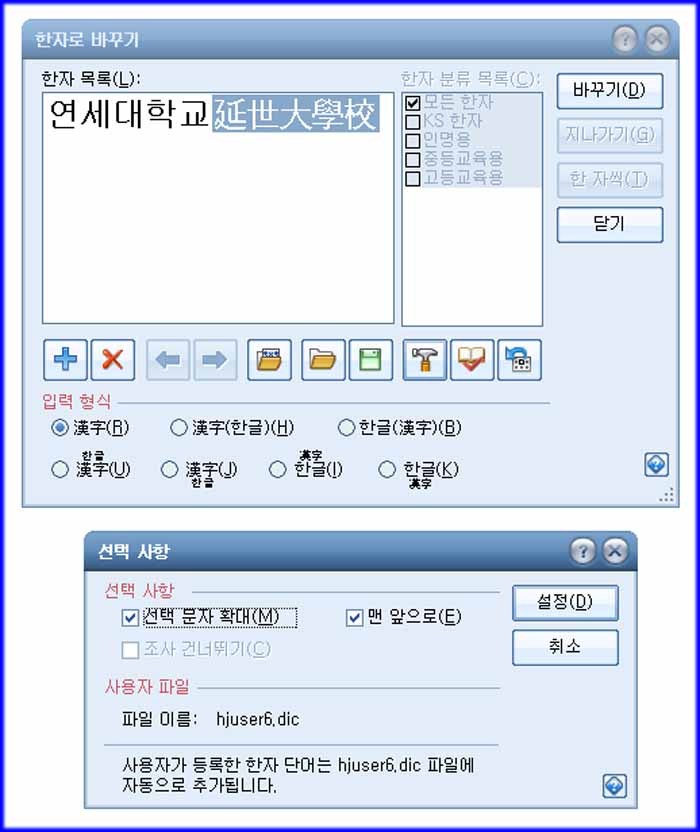 이 글은 [한글2007]을 기준으로 쓰는 것임을 미리 알립니다. 개인적으로 ‘한자 단어 등록’한 것을 다른 컴퓨터에서도 사용할 수 있고, 또 해당 프로그램(한글2007)을 삭제하고 재 설치해도 이것을 사용할 수 있습니. 여태 이것을 모르고 재설치하고 다시 번거롭게 ‘한자 단어 등록’을 하여 이용했다니..... 아마 [한글2007] 이전부터 이런 기능이 있었던 것 같습니다.