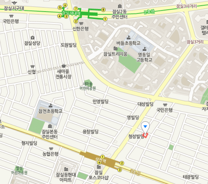 2호선 잠실새내역 3번출구 도보5분 : 2호선 잠실새내역 3번출구 나오셔서