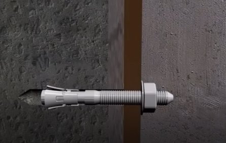 [웨지앙카]너트를 돌려 볼트를 끌어올림으로써 슬리브의 날개를 펴서 고정시키는 원리 사용