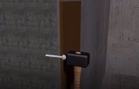 3. 고정물 판재 위로 웨지 앙카 망치로 박아넣기