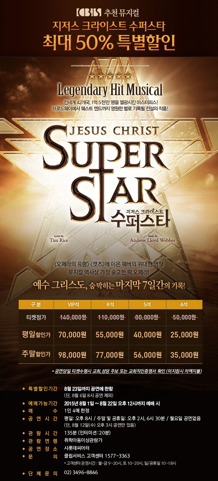 아직 보지 못한 분들에게 8월은 마지막 기회가 될 듯 하구요. 저희가 할인을 드릴 수 있는 시간과 권한도 이제 점점 사라지고 있습니다... 크리스천에게 정말 많은 혜택을 주고 있는데 시간과 비용을 내서라도 꼭 뮤지컬을 경험하시면 좋겠습니다!! ^^