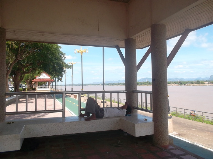 자기 자리라고 나를 쫓아내고 그자리에 누워 오수를 즐기는 태국 노숙자