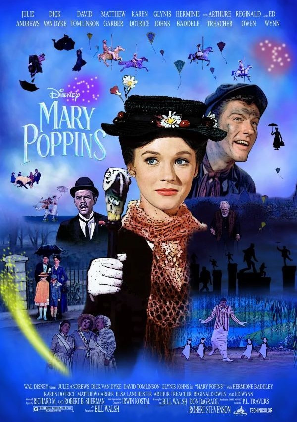 ‘메리 포핀스(Mary Poppins, 1964년)’는 호주출신의 영국작가 파멜라 트래버스의 동명소설을 바탕으로 로버트 스티븐슨 감독이 연출한 뮤지컬 영화이다. 2006년 미국영화연구소(AFI)에서 선정한 최고의 뮤지컬 영화 25편중에서 6위에 뽑혔고, 아카데미에서 여우주연상과 편집상, 음악상, 주제가상, 시각효과상 등 5개 부문을 수상했다.