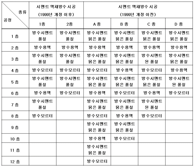 즉 1종은 방수액이 2회 도포되고,