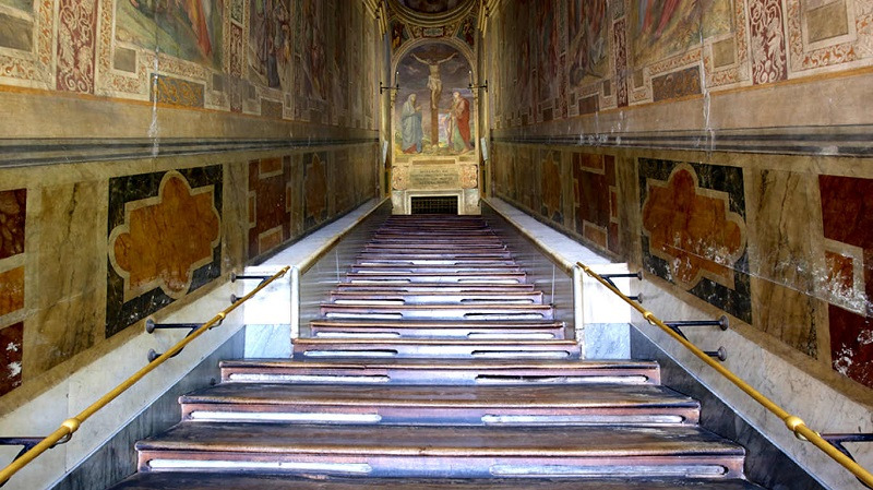 ํ์ ๋ก๋ง๋ค์คํฌ(Romanesco) ์์์ด๋ฉฐ ๋์ด๊ฐ 75๋ฏธํฐ๋ก ๋ก๋ง์์ ๊ฐ์ฅ ๋๋ค. ์ฑ๋น ์ ๋ฉด์ ํ๋ฅด๋๋๋ ํธ๊ฐ(Ferdinando Fuga)์ ์ํ์ฌ 18์ธ๊ธฐ์ค๋ฐ์ ์ธ์์ง๋ ๋ฐ ํ๊ธฐ ๋ฐ๋ก์ฝ(Barocco) ์์์ ๊ฑธ์ํ์ด๋ค. ์ผ๋จ ์ฑ๋น์ ๋ค์ด์๋ฉด ์