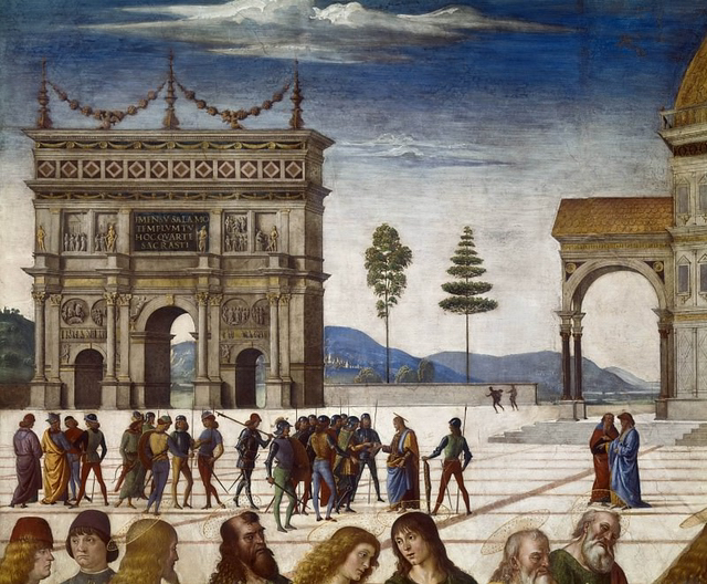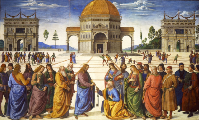 The Delivery of the Keys, or Christ Giving the Keys to St. Peter is a fresco by the Italian Renaissance painter Pietro Perugino, executed in 1481–1482 and located in the Sistine Chapel, Rome.