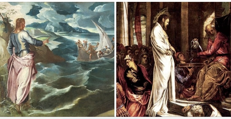 이 그림은 틴토레토의 개성을 잘 보여준다. 성경 속 ‘물 위를 걷는 예수님(마14:22~33)’을 고전적인 방식에서 벗어나 긴장감과 극적인 분위기를 느낄 수 있게 하려고 화면을 다소 거칠게 처리했다. 예수님의 동작을 대담하게 드러내 복음의 핵심을 격정적으로 표현했다.