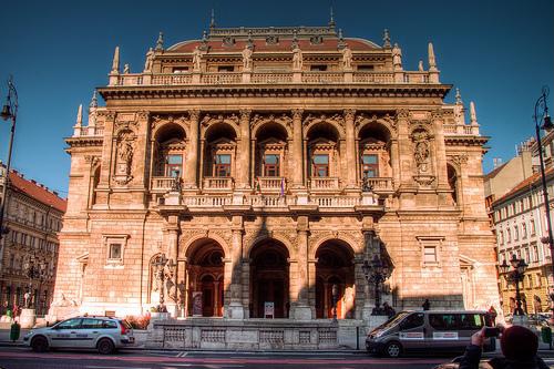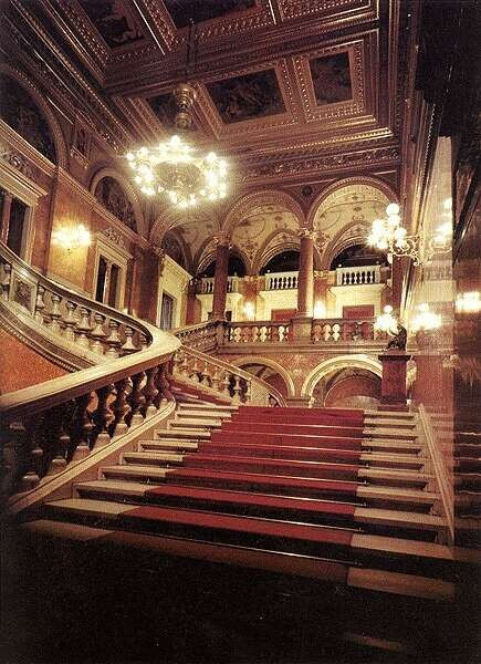 ๋ฏธํด๋ก์ค ์ด๋ธ(Miklรณs Ybl)์ด ์ค์คํธ๋ฆฌ์ ๋น ์คํ๋ผ ํ์ฐ์ค์ ์ํฅ์ ๋ฐ์ ์ค๊ณํ ์ด ๊ฑด๋ฌผ์๋ ํ์ฌ ํ๊ฐ๋ฆฌ ๊ตญ๋ฆฝ ์คํ๋ผ์ ํ๊ฐ๋ฆฌ ๊ตญ๋ฆฝ ๋ฐ๋ ๊ฐ ๋ชจ๋ ๊ณต์ฐ๋๊ณ ์๋ค.