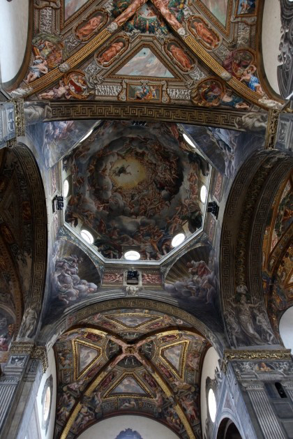 금색과 각종 화려한 대리석으로 장식된 파르마대성당 내부에 또다른 볼거리는 천장과 벽면을 가득 메운 프레스코화이다. 그 중에 특히 유명한 프레스코화는 안토니오 코레지오(Antonio da Correggio)가 그린 '성모의 승천(Assunzione della Vergine)'이다.