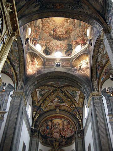 제단 바로 위 천장에 그려진 '성모의 승천'은 사도와 천사의 호위를 받으며 회오리구름 모양으로 하늘로 승천하는 성모마리아의 모습이 그려져 있다.
