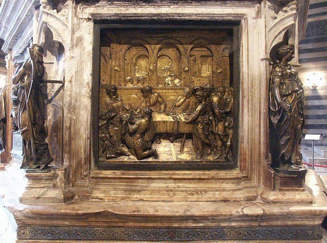 도나텔로(Donatello, 1386-1466)는 굉장한 명성을 얻은 조각가였다. 그래서 그는 여러 도시로 불려 다녔다. 그는 1427년경에 시에나 대성당의 세례대를 위한 청동부조를 주문받았다.