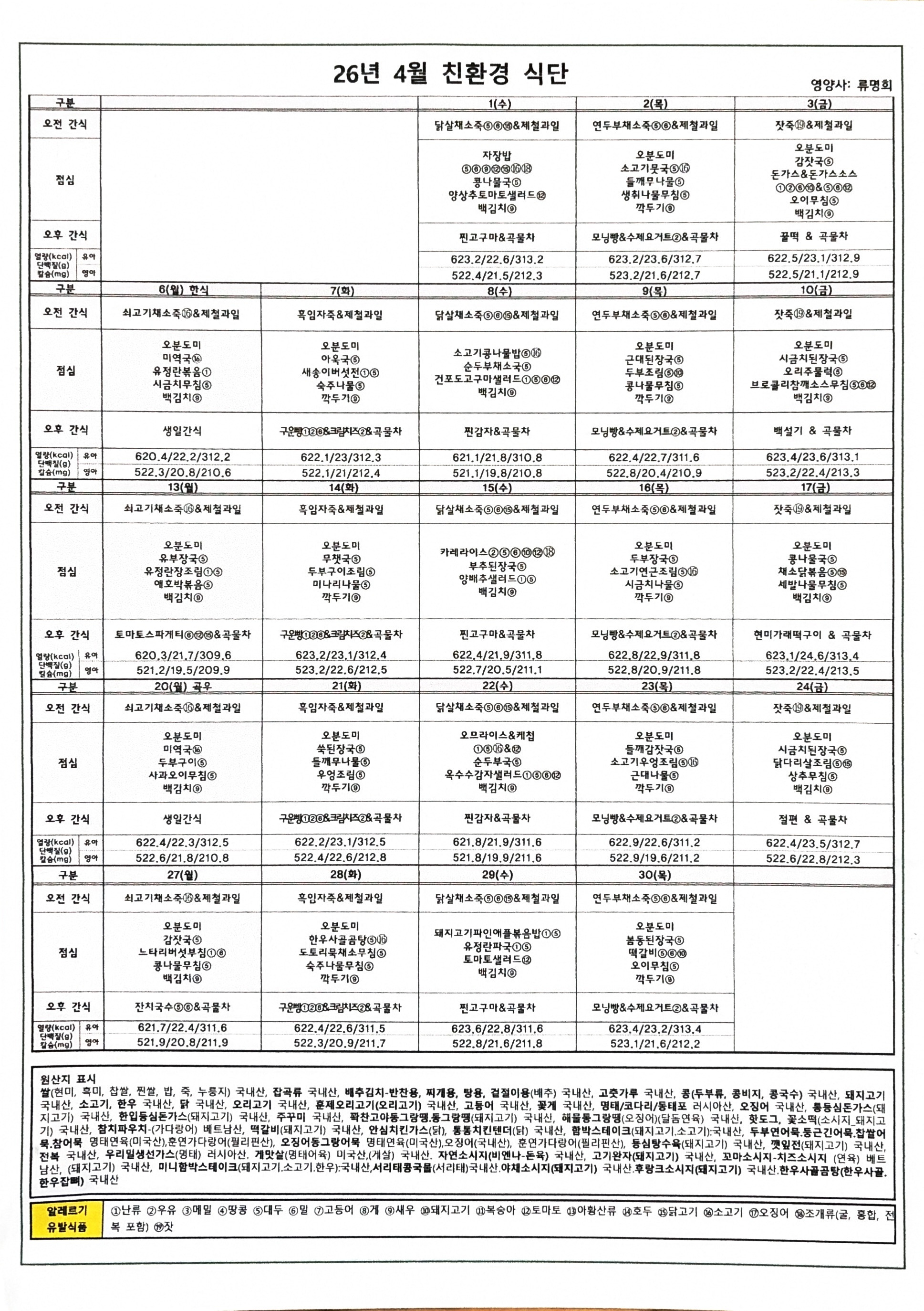 2026년 4월 식단표 작성자백합 선생님|작성시간26.03.26|조회수41 목록 댓글 0 글자크기 작게가 글자크기 크게가 다음검색 현재 게시글 추가 기능 열기 북마크 공유하기 신고 센터로 신고 댓글 댓글 0 댓글쓰기 답글쓰기 댓글 리스트