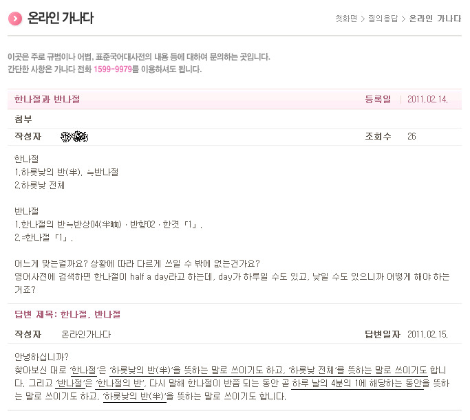 답댓글 작성자래리삐 작성자 본인 여부 작성자 작성시간 11.04.05 둥둥 님 생각도 맞고요, 경우에 따라 반나절과 한나절이 같은 의미로 쓰일 때가 있나 봅니다.