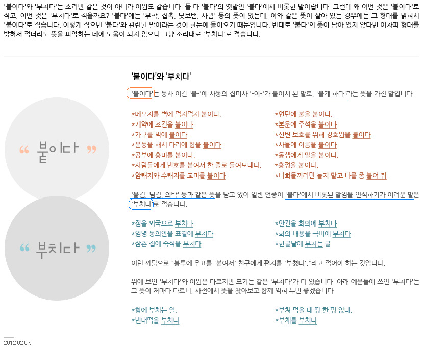 작성자백목련 작성시간 12.02.16 전 이 붙이다와 부치다에 대해서 어느날은