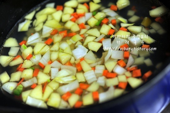 5, 카레가루는 물1컵 붓고 잘 풀어요