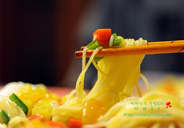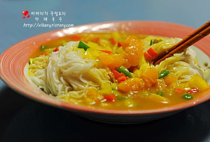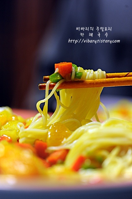 이렇게 국수에 카레를 비벼 먹어보면 씹지 않아도 술술술 ..넘어간답니다.