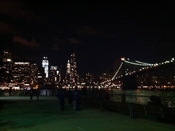 여덟시 밖에 안된 시간, 밤이 깊어 보이죠? 날은 춥고요.. 오른 쪽에 보이는 게 브루클린 브릿지. 걸어서 건널 수도 있어요.ㅣ