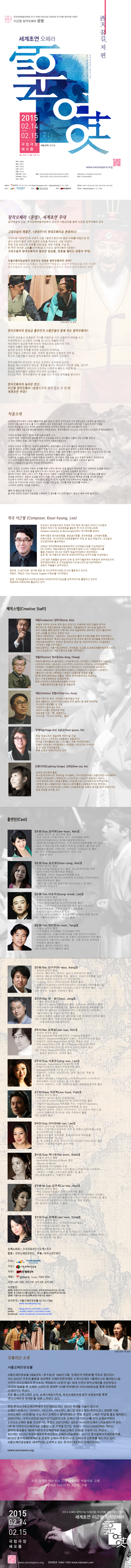 2014년 창작산실에서 우수 창작오페라로 선정되어 문예진흥기금 지원을 받는 오페라입니다.