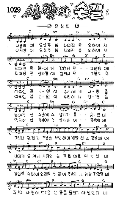 주님의 그손을 잡았었네주님의 사랑에 뜨거운 눈물을 흘리고야 말았다네