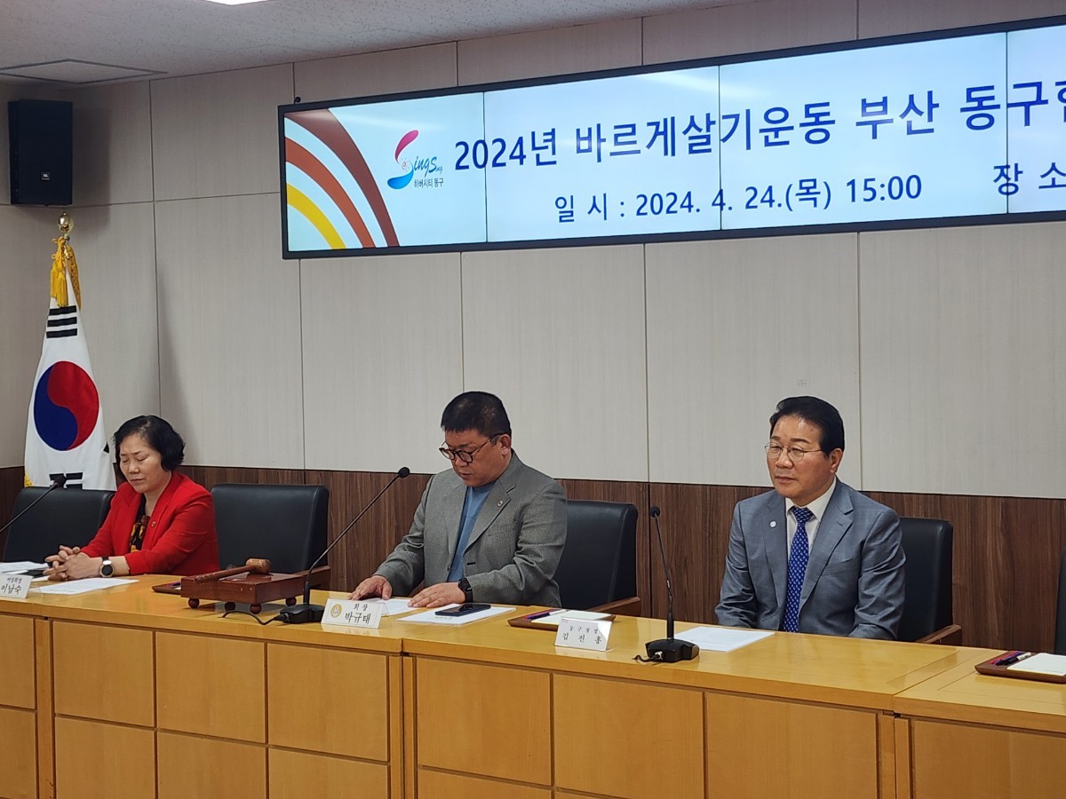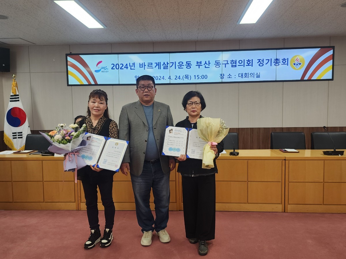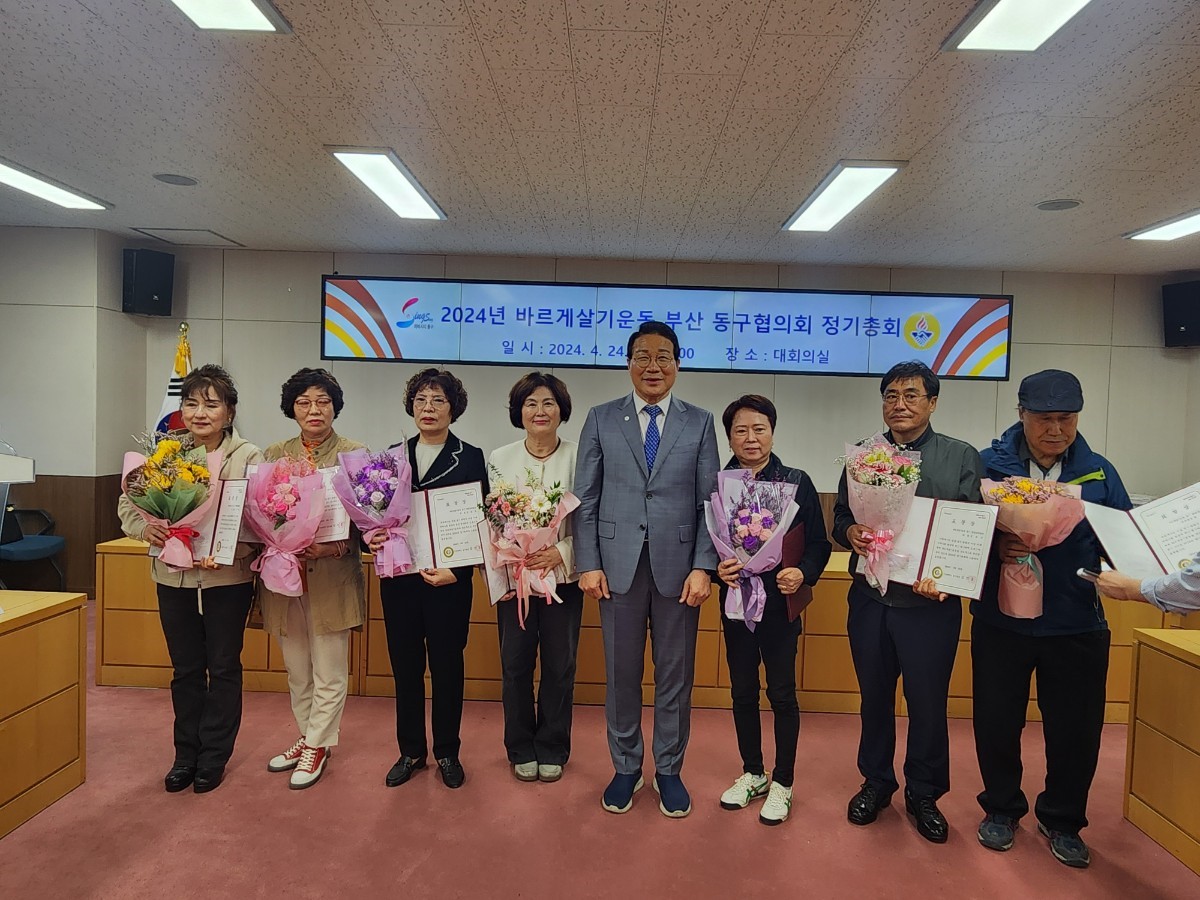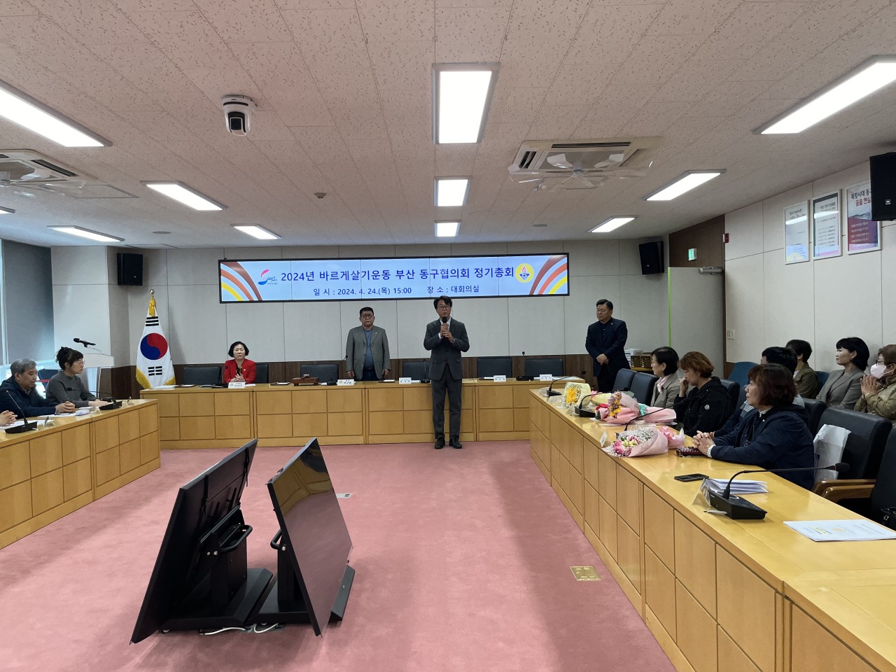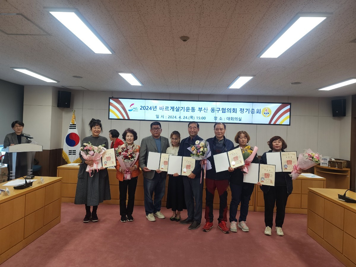 바르게살기운동 부산동구협의회(회장 박규태)는 2024.4.24(수) 오후3시 동구청대회의실 2층에서 구ᆞ동 임원님과 유공위원, 초청내빈이 참석한 가운데 2024년 정기총회를 다음과 같이 개최하였다.