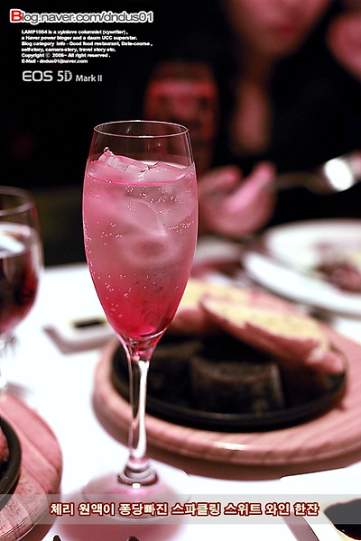 여기에 체리시럽을 한방을 넣어 믹싱한 칵테일 글래스 와인이라 생각하면 된다.