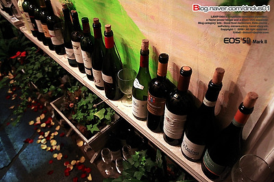 입그엔 와인병들이 하나의 인테리어 소품으로 꾸며져 있고,