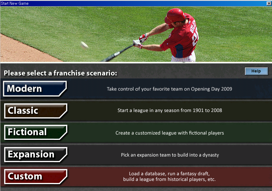 League 실제 선수 또는 가상 선수가 있는 새 게임을 시작합니다. 역사적 시즌 (1901-2008)부터 자료를