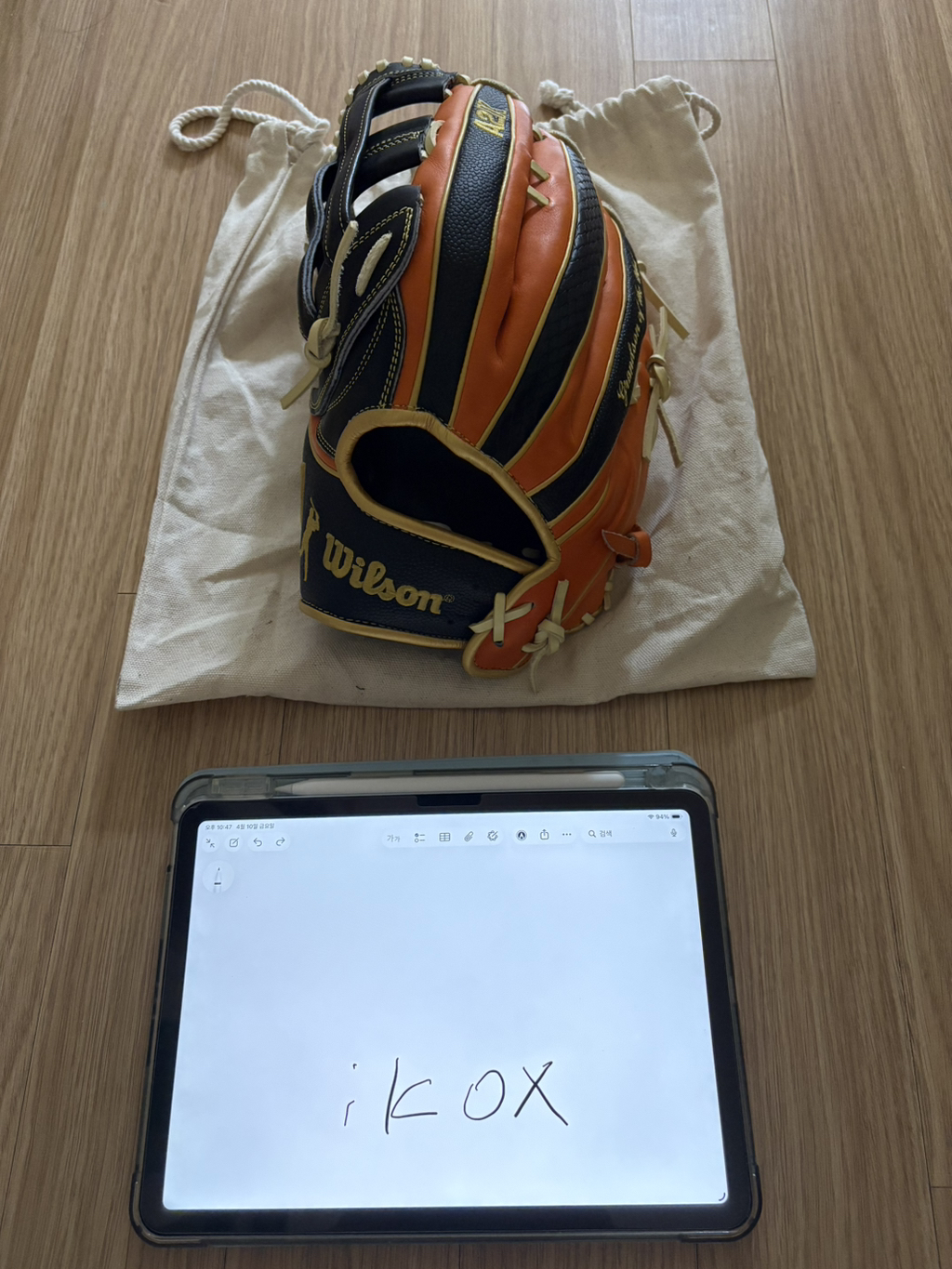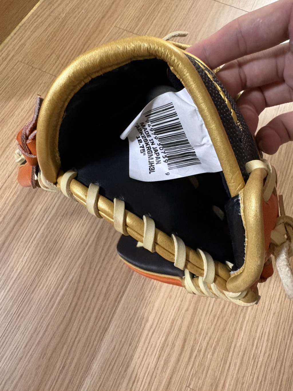 캐치볼도 안한 새제품이고 길각만 잡아놔서 바로 실전 가능하세요. 완벽하게 길들인건 아니라 조금 하드한 부분은 본인 손에 맞추면 되겠습니다.구성품은 글러브랑 주머니입니다.(박스는 구매했을때부터 없었습니다)