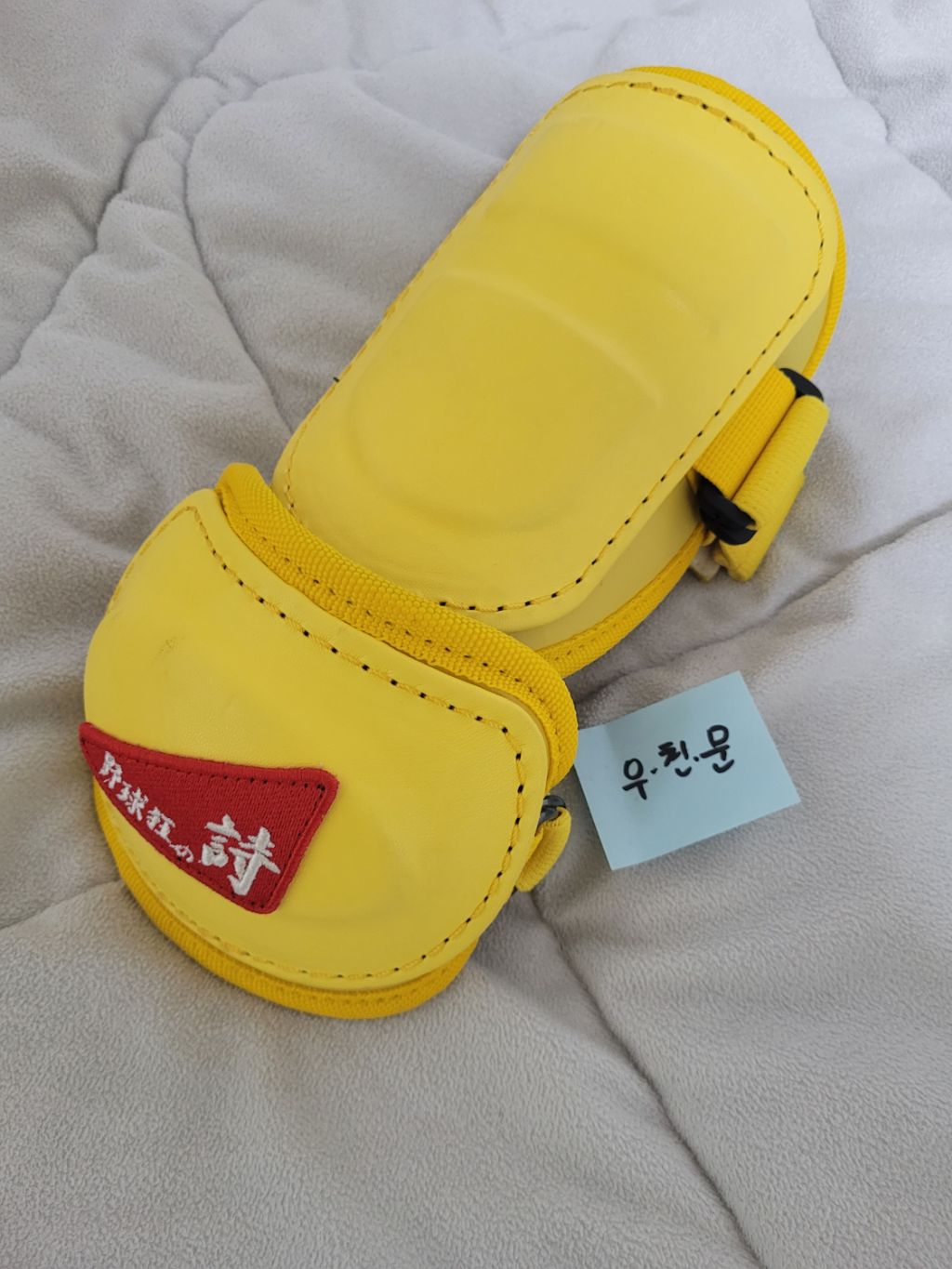 야구광의시 노란색 암가드입니다. 흙구장에서 뛰느라 가죽이 긁히거나 찍히고 이염이 생긴 부분이 있습니다. 참고 바랍니다.