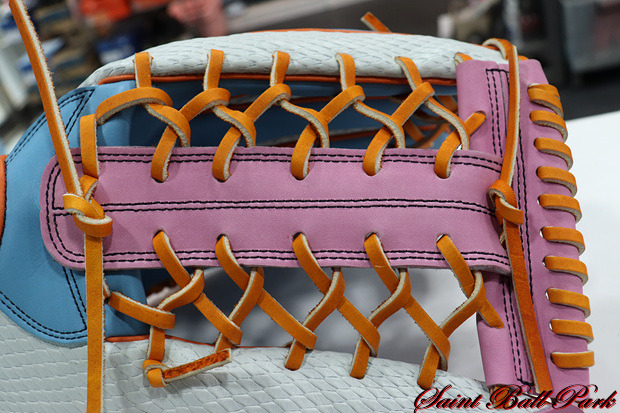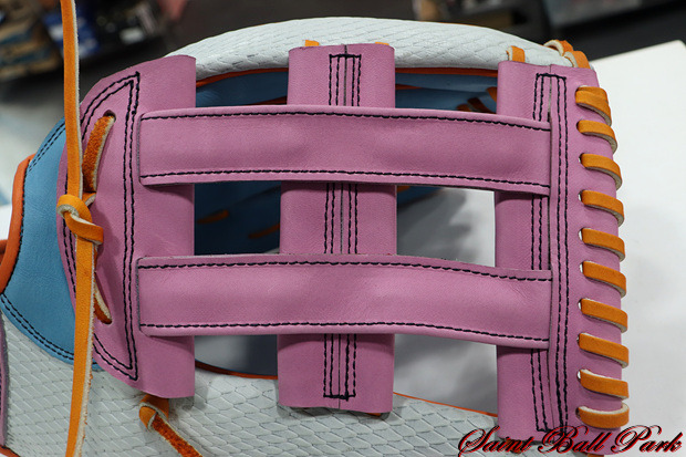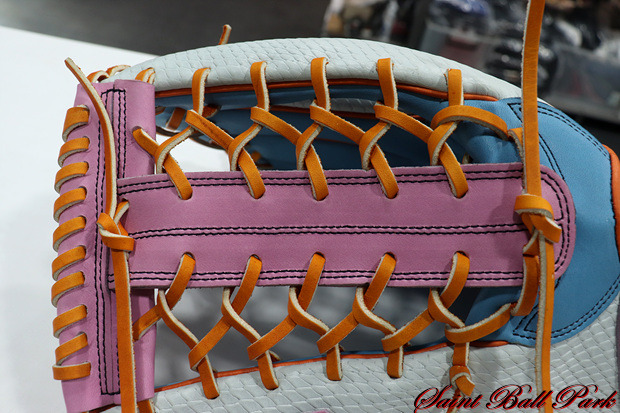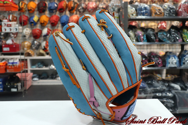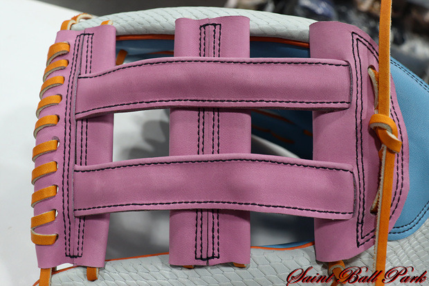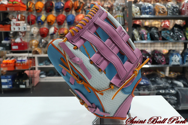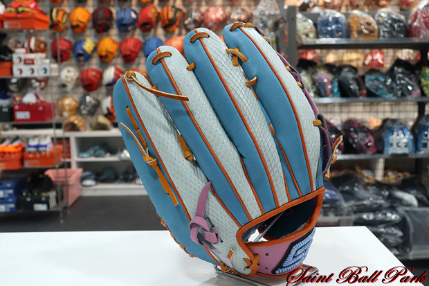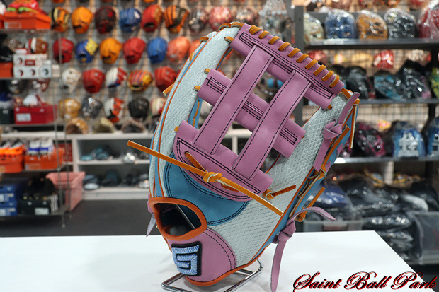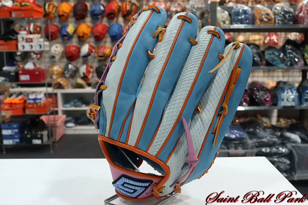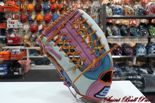 [K + J 스티어하이드] 스카이블루 베이비핑크 화이트 오렌지 배색 외야