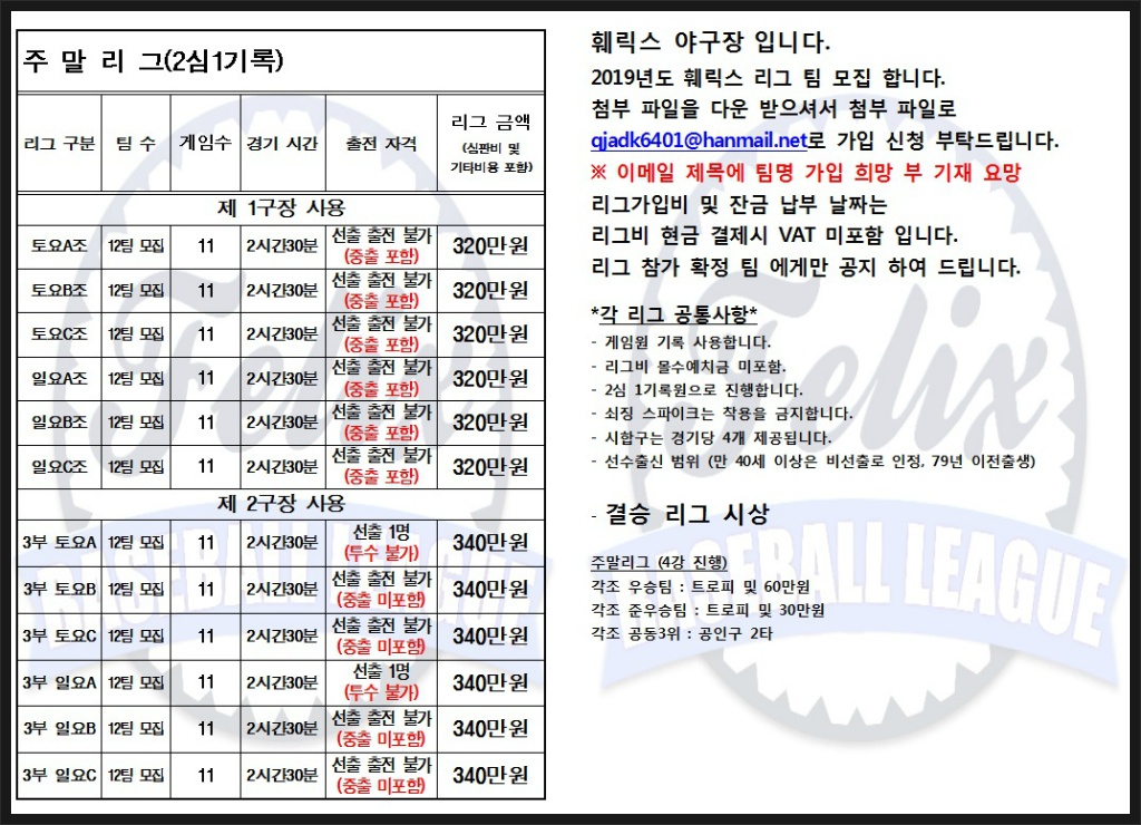 리그 규정 및 접수 방법 확인 가능 합니다.