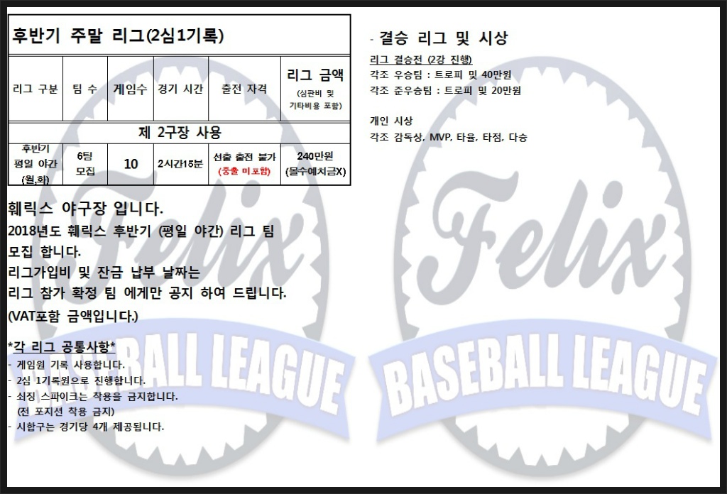 2019 훼릭스 주말 리그 및 2018 평일 야간 후반기
