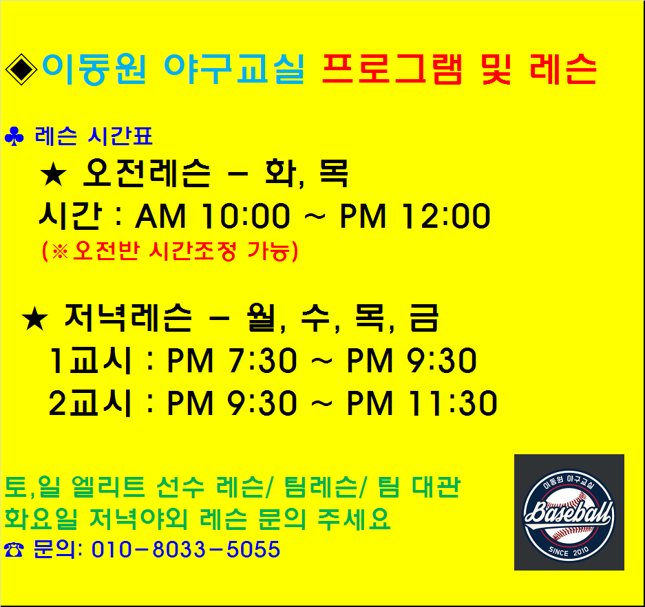 선수반 레슨비용은 전화로 문의주세요