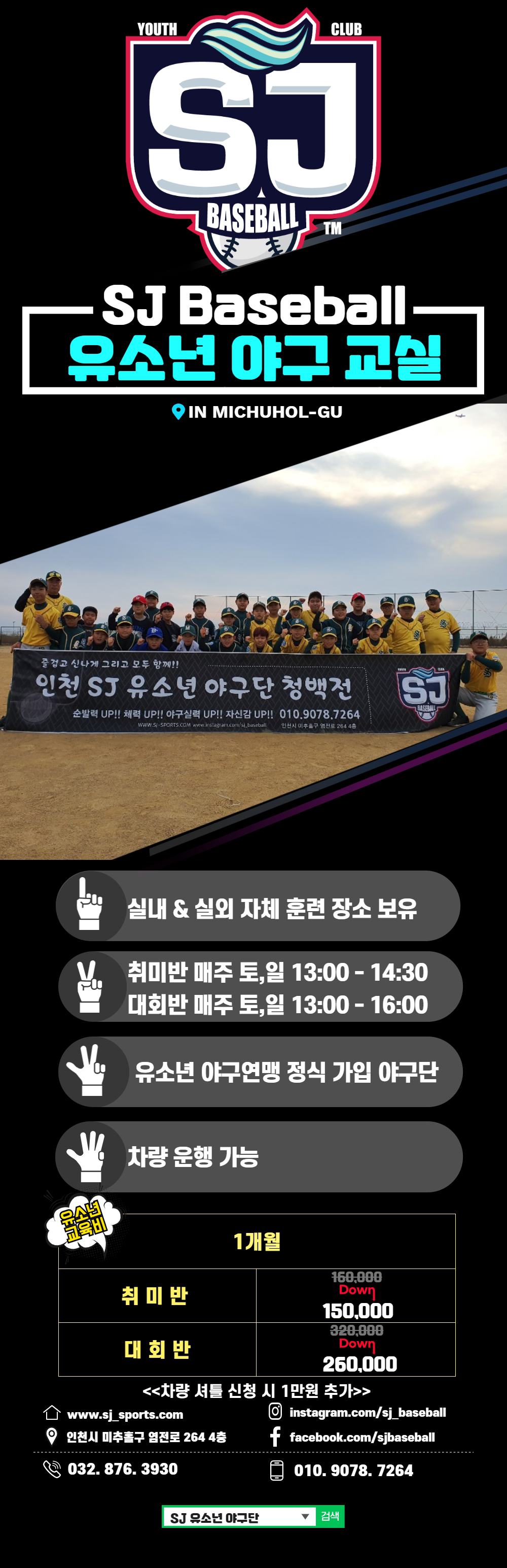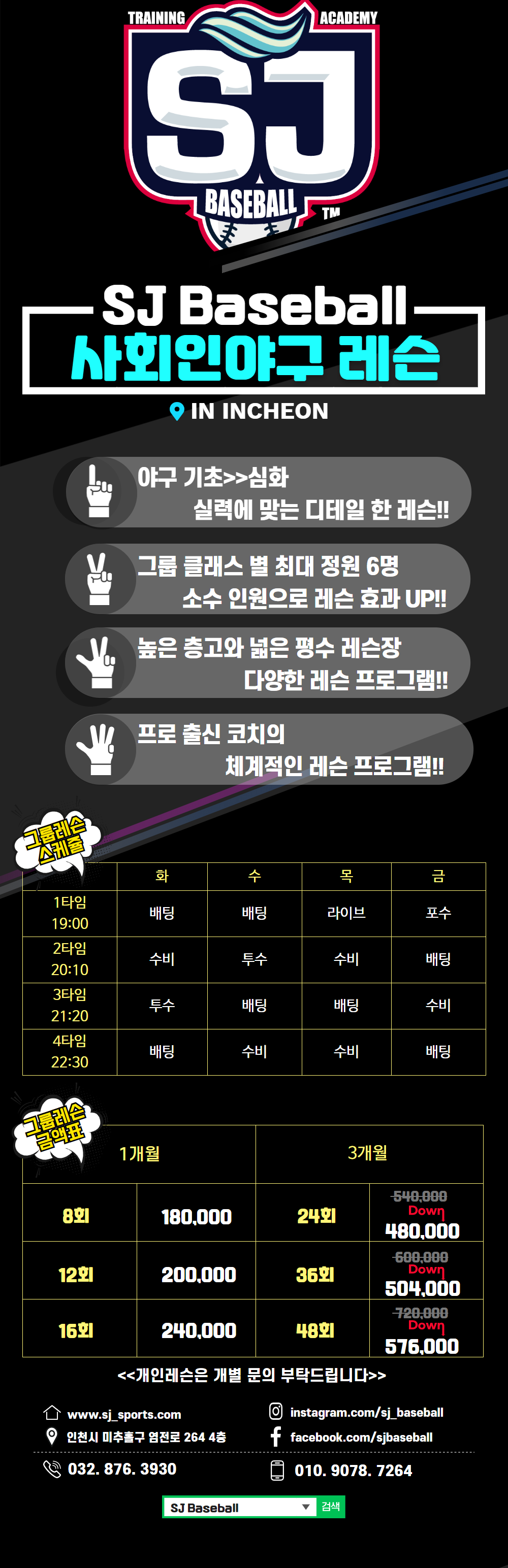 [레슨장]★★SJ Baseball★★ 최고의 시설 / 다양한 레슨 프로그램 / 그룹 & 개인레슨 / 자체 청백전 / 팀대관 / SK출신 코치 작성자SJ Baseball|작성시간21.01.27|조회수16 목록 댓글 0 글자크기 작게가 글자크기 크게가 다음검색 현재 게시글 추가 기능 열기 북마크 공유하기 신고 센터로 신고 댓글 댓글 0 댓글쓰기 답글쓰기 댓글 리스트