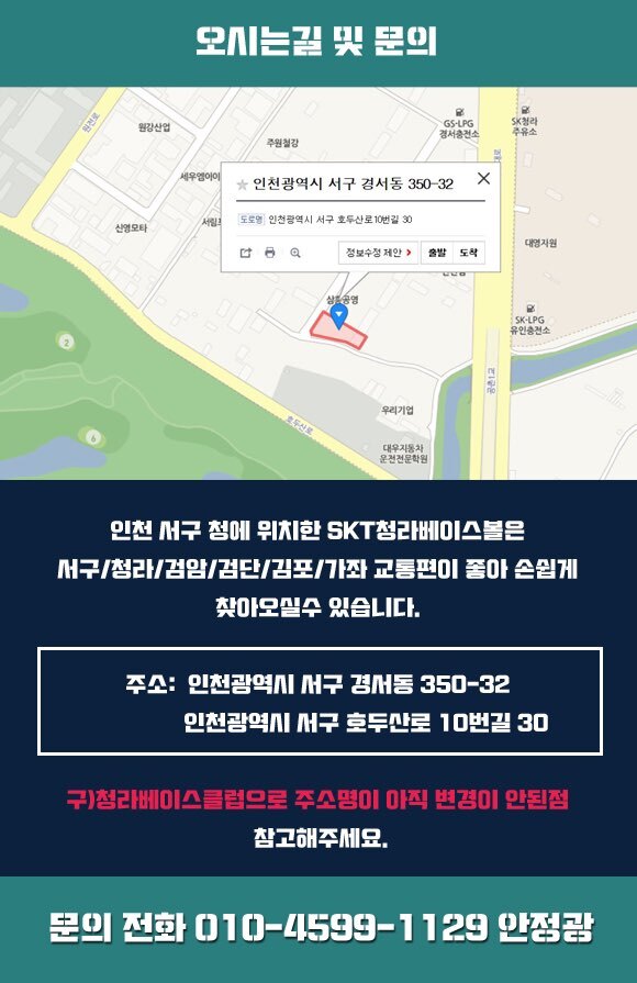 홈페이지 : http://www.skt청라베이스볼.com