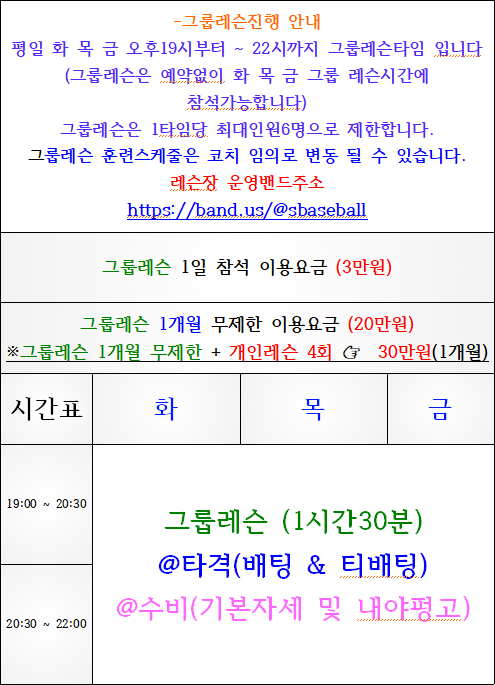 실내레슨장 밴드 : https://band.us/@sbaseball