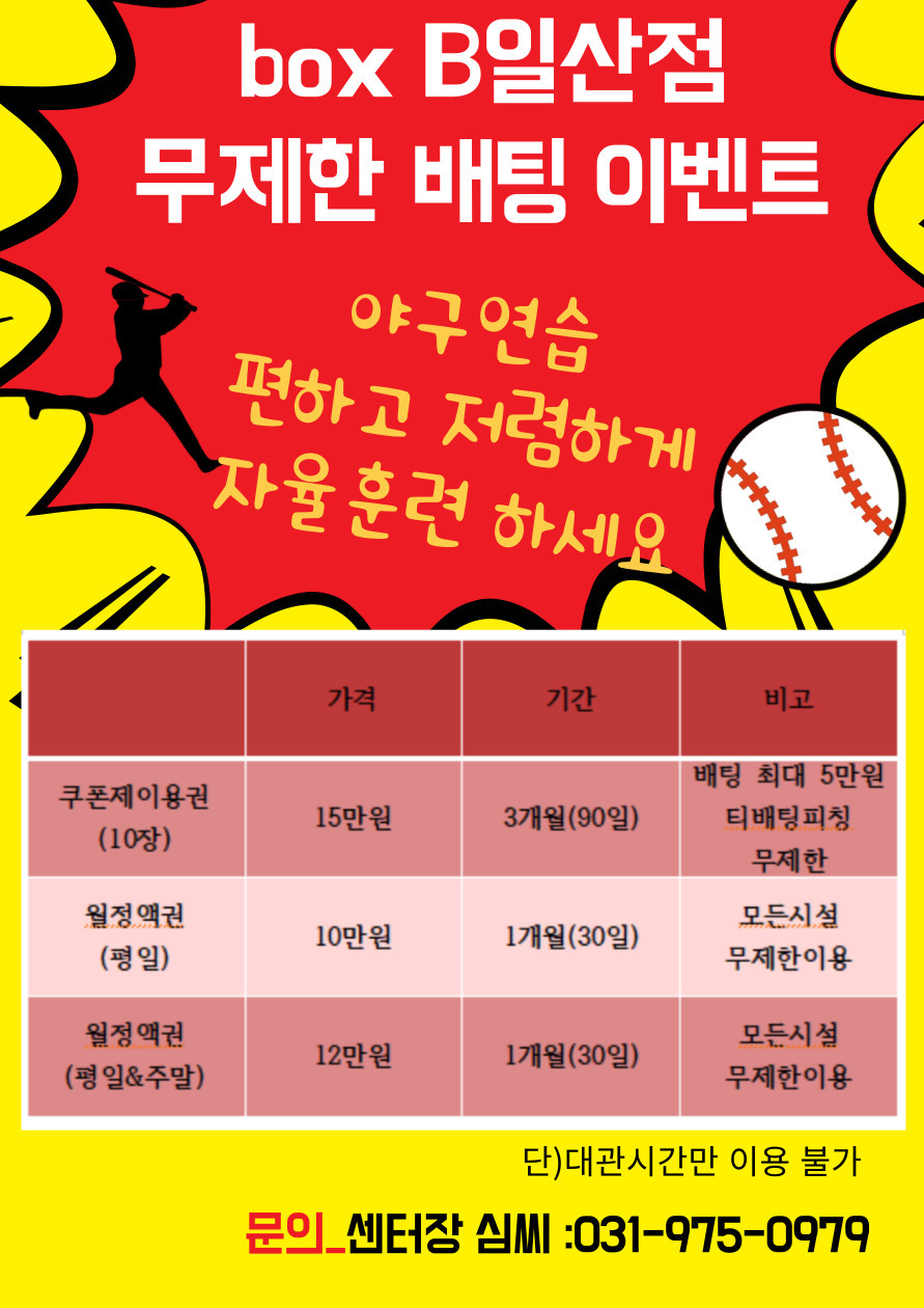 쿠폰제 & 월정액제 야구연습 배팅연습
