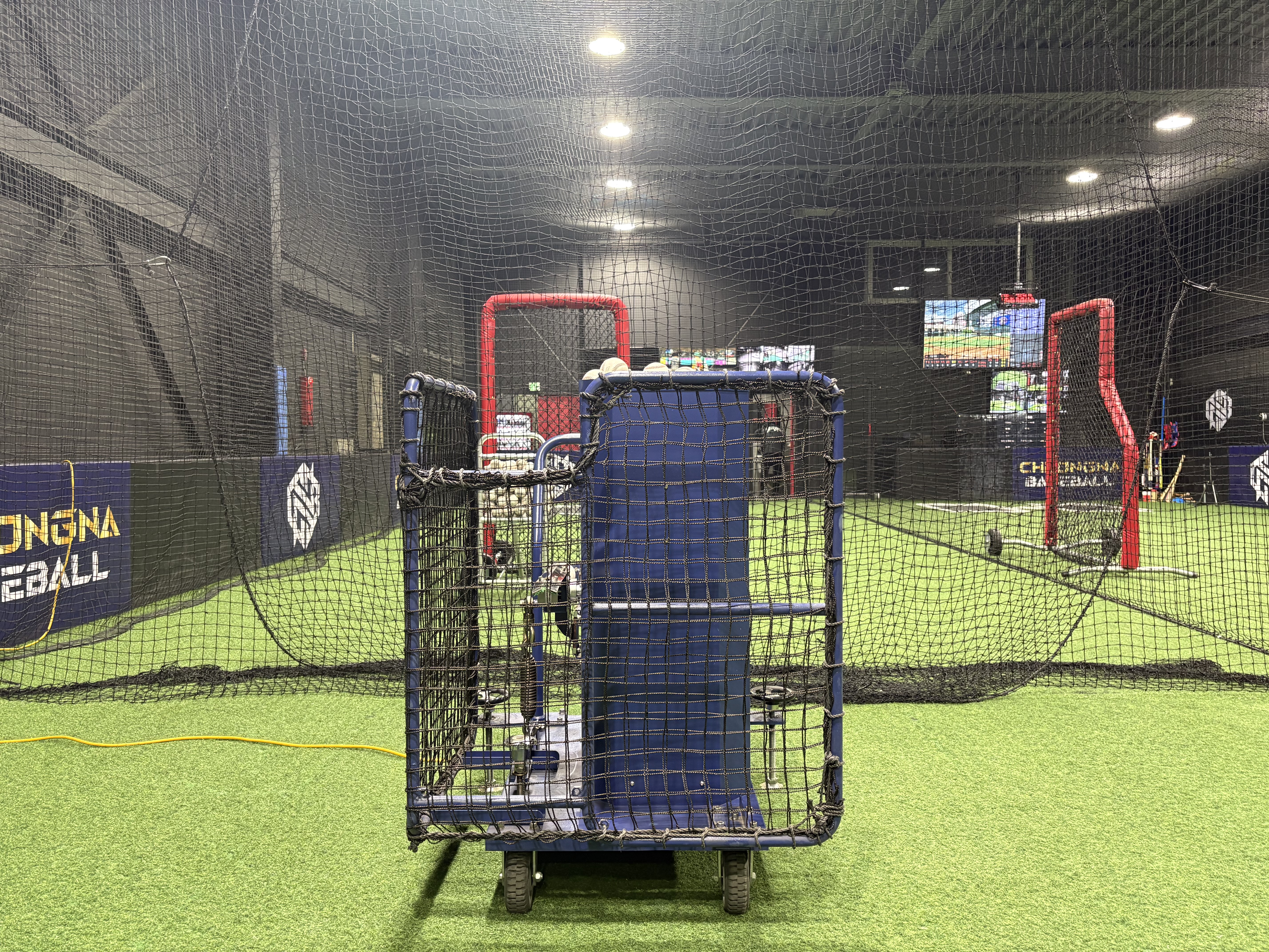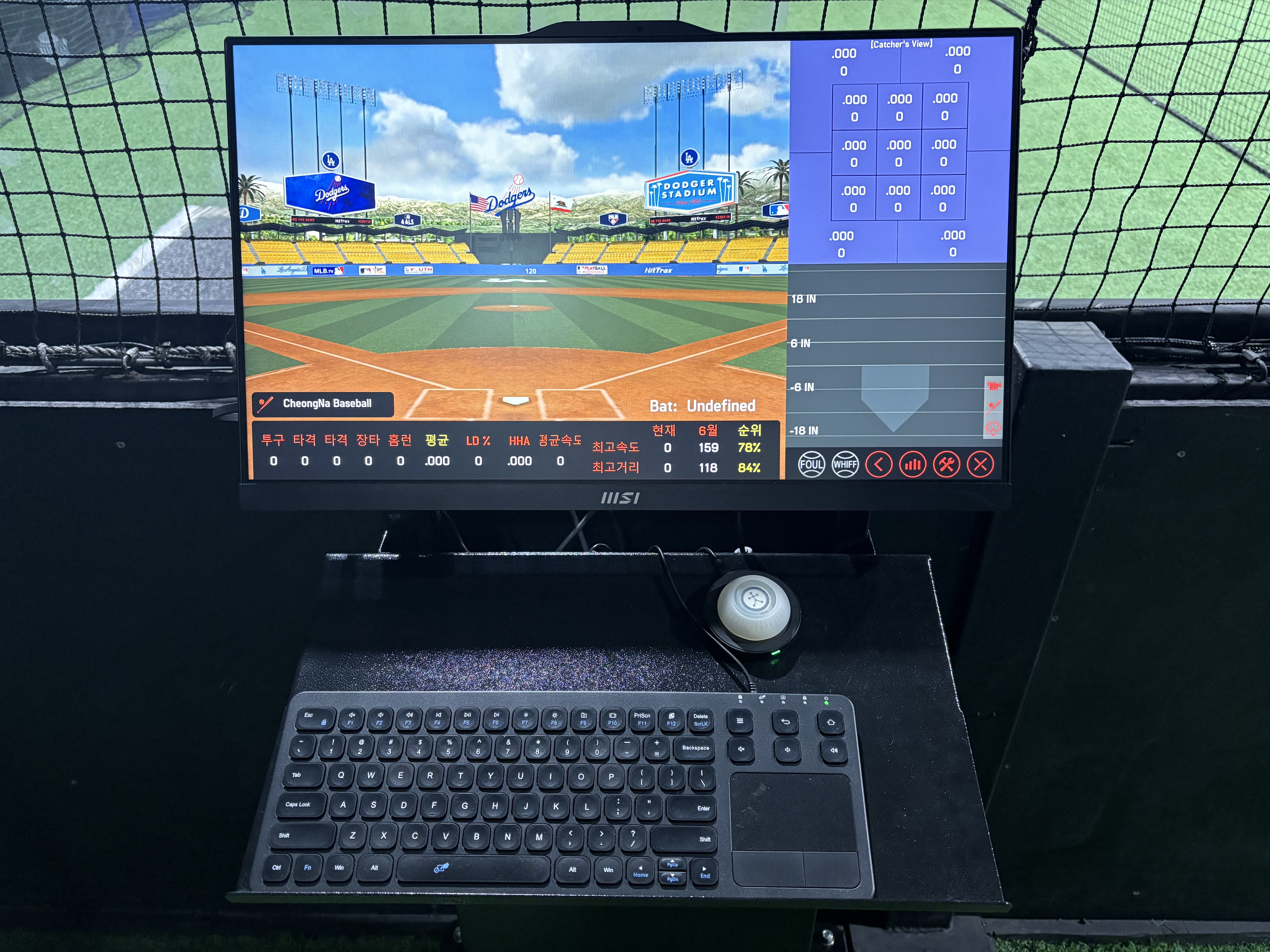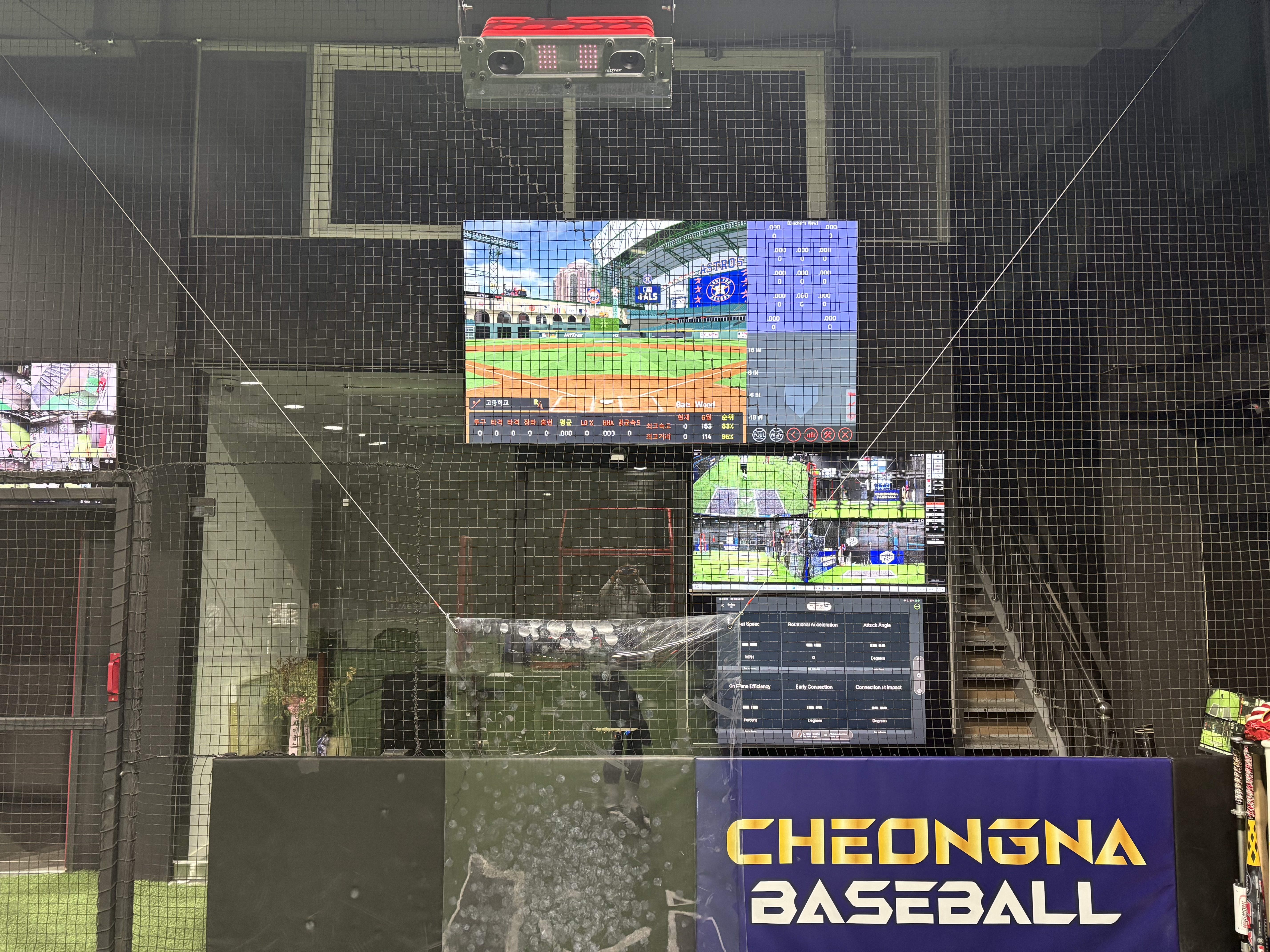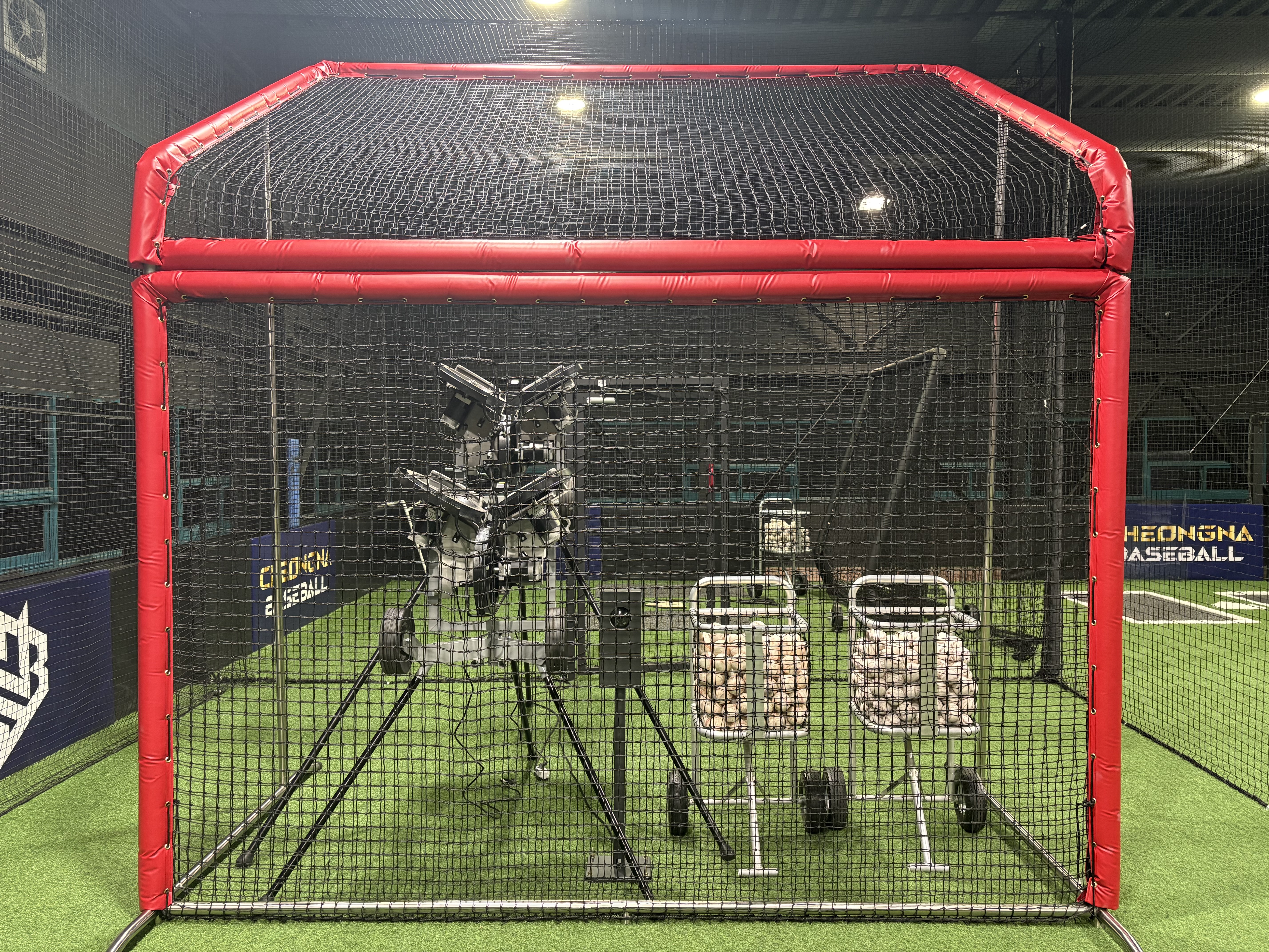 1층 - 타격 (히트트랙스 , 핵어택 18.44m 거리와 투수 릴리스포인트 높이로 직구 변화구 시합 설정에 맞춰놓은 피칭머신 2대 , 4채널 카메라 영상분석 , 블라스트 3D모션 체크 & 다양한 수치 분석 )