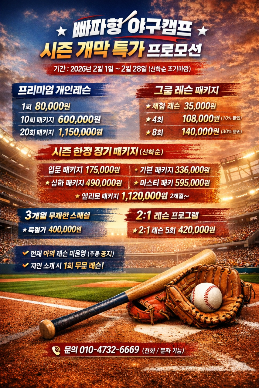 🌟 빠따형 야구캠프 시즌 개막 특가 프로모션 🌟