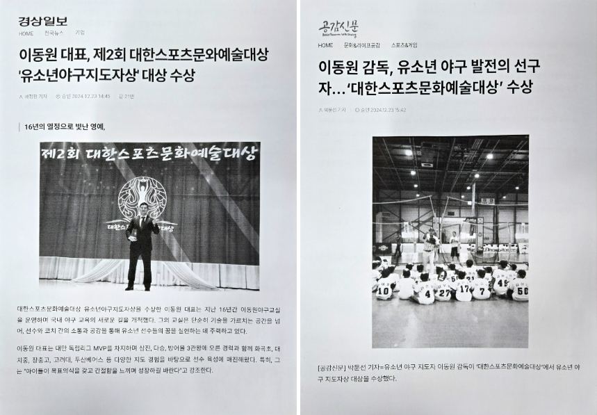 유소년야구지도자부분 대상을