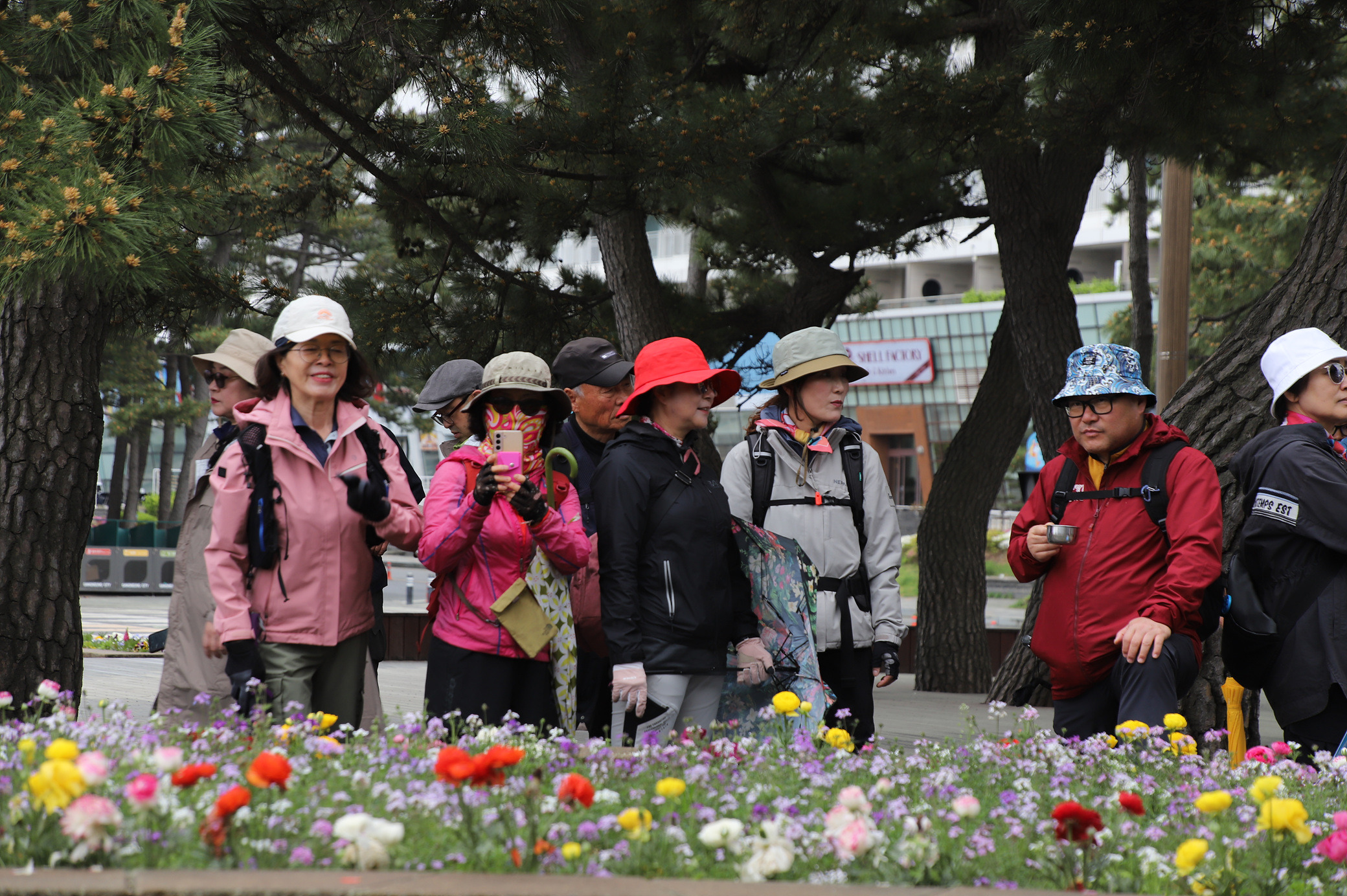 꽃밭을 가로지르는 님들의 모습을